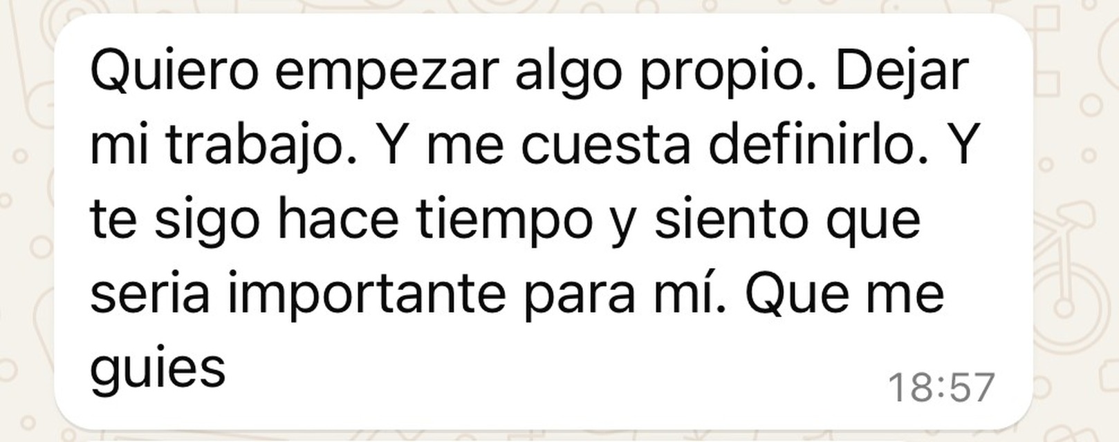 No dudes de tu potencial, estoy aca para que encontremos eso que te enciende y te hace feliz. o que te alinees con lo que ya tenes y sea fluido y no una carga que funcione y vivir de eso.
